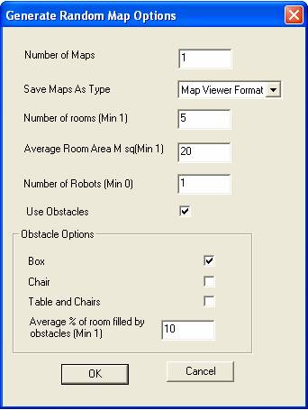 MapViewer has the ability to randomly generate any number of maps. Each map can have any number of rooms, and each room can contain a number of different obstacle types.